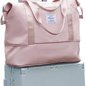 Large Travel Tote Bag, Waterproof Expandable Duffel Gym Tote Bag,Weekender Carry On Overnight Bags for Women with Trolley Sleeve Wet Pocket,travel duffel bags,Pink