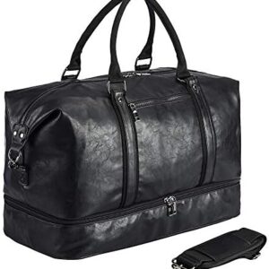 Leather Travel Bag with Shoe Pouch,Weekender Overnight Bag Waterproof Large Carry On Travel Tote Duffel Bag
