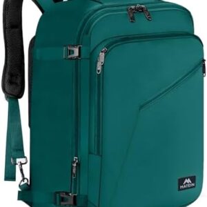 MATEIN Travel Backpack Personal Item Size, Carry on Backpack for Airplanes, Simple Backpack with Trolley Sleeve, Gifts for International Travelers, 35L, Peacock Blue