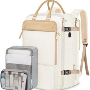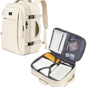 MATEIN Carry on Backpack for Women, 52L TSA Travel Laptop Backpack with USB Charging Port & Shoes Compartment, 17 Inch Extra Large Expandable Flight Approved Computer Bag with 2 Packing Cubes, Beige