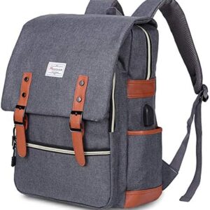 Modoker Vintage Laptop Backpack for Women Men,Travel Backpacks with USB Charging Port Fashion Backpack Fits 15.6Inch Notebook, Grey