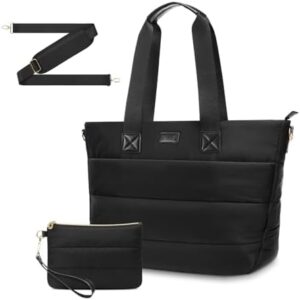 MOSISO Puffy Laptop Tote Bag, 15.6 inch Computer Bag with Front Pocket, 16 inch Large Capacity Shoulder Messenger Bag Casual Handbag Work Briefcase for Office Travel with Purse & Trolley Belt, Black