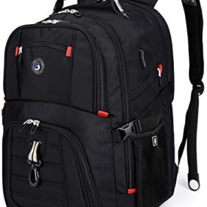 SHRRADOO Extra Large 52L Travel Laptop Backpack with USB Charging Port, College Backpack Airline Approved Business Work Bag Fit 17 Inch Laptops for Men Women,Black