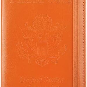 Passport and Vaccine Card Holder Combo, PU Leather with CDC Slot, Cover RFID Blocking, Credit Slots, Pen Wallet (Orange)