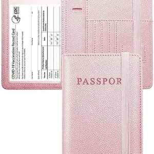 Passport and Vaccine Card Holder Combo, Passport Holder with Vaccination Card Slot Passport Wallet with RFID Blocking Passport Cover for Women