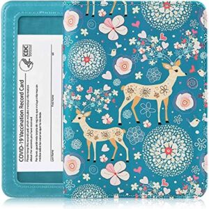 Passport and Vaccine Card Holder Combo, Passport Holder with Vaccine Card Slot, Passport Cover Case for Vaccination Card Protector, PU Leather RFID Blocking Travel Wallet (Sika deer)