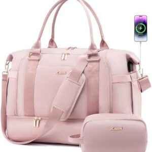 Gym Bag LOVEVOOK Travel Duffel Bag with USB Charging Port,Weekender Bags for Women with Shoe Compartment,Carry on Overnight Bag with Toiletry Bag,Hospital Bags for Labor and Deliver
