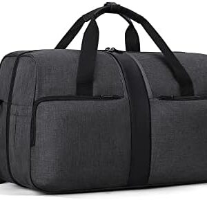Gym Bag, BAGSMART Duffle Bag for Travel Duffel Bag, Carry on Weekender Overnight Bag with Trolley Sleeve, Personal Item Travel Bag, Sports Gym Tote Bag, Shoe Bag-Blck Grey