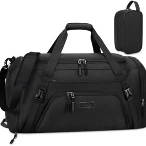 Gym Bag, Weekender Bag for Men Women Travel Duffel Bag with Wet Pocket Large Overnight Bag with Shoe Compartment Carry On Travel Bag Gym Duffle Bag Sports Bag-Black