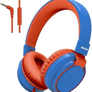 Headphone Kids Volume Limited 85/110dB Wired Over-Ear/On-Earr Foldable Headset with Inline Cable AUX 3.5mm Cord Mic for Boy Girl Child PC Notebook Tablet Blue