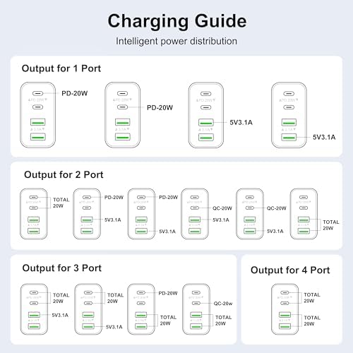One for All: With totally 40W 4-Port designed (2*USB-C + 2*USB-A), allow users to simultaneously charge four devices. It can really save your time,best replacement for your original charger.