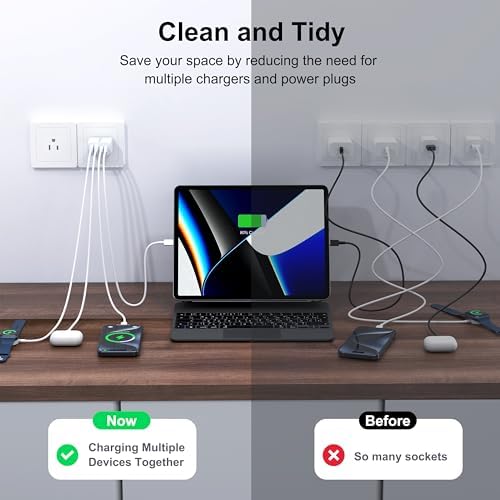 40W Max of power across 4 ports is ideal to charge your iPhone iPad,AirPods, and more.