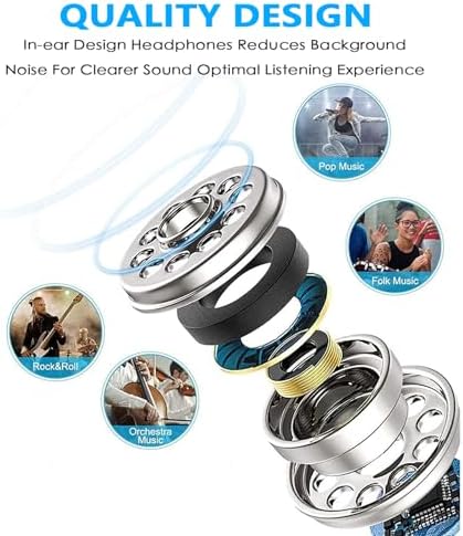 【Ergonomic Design】-The in ear wired earbuds adopt a design that conforms to the human auricle, which fits the auricle perfectly, is comfortable to wear, Headphones not easy to fall off, and is also suitable for long-term wear to enjoy music.