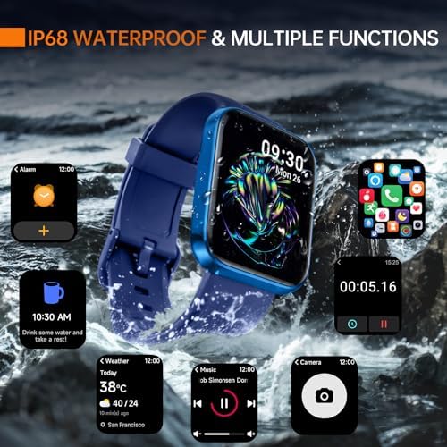 🏃 【100+ Sports Modes and IP68 Waterproof】 The smart watch provides 100+ exercise modes, such as running, yoga, jumping jack, sit-ups, etc. During your exercise, it will record your data like heart rate, steps, calories burned, distance and active hours in real time. The fitness tracker is IP68 waterproof so you can wear it during outdoor activities, rainy days, washing hands.