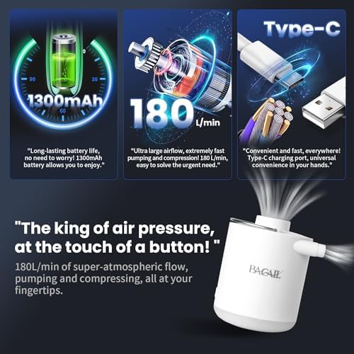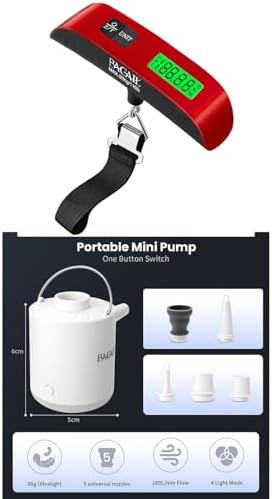 BAGAIL Digital Luggage Scale, Hanging Baggage Scale with Backlit LCD Display, Travel Weight Scale, Portable Suitcase Weighing Scale with Hook, 110 Lb Capacity, Battery Included-Red with Temperature BAGAIL Portable Vacuum Pump with Light Function,Up to 1300mAH Rechargeable Battery.Perfect for Vacuum Compression Bags Sleeping Pads, Pool Floats, Swimming Rings