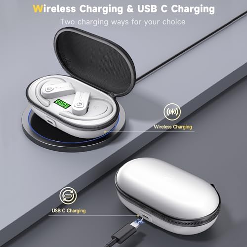 【Wireless Charging & Type-C Charge】The sports bluetooth headphones support two charging methods. One is to use the supplied type-C cable to charge the charging case. The other is to put the charging box on the wireless charging pad for charging, which can reduce the damage to the charging port caused by frequent plugging and unplugging of the data cable and protect the charging port. Two convenient charging methods to meet your different needs.(The package doesn’t include wireless charger)