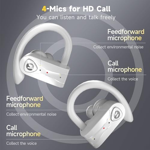 【4 Mics & Stereo Sound Quality】Each earbud of the wireless earbuds built in dual microphones.Four microphones work together to reduce the ambient noises, enhance your voice during phone calls.The bluetooth earbuds adopt advanced chip,10mm speaker that provide clear and balanced stereo sound quality.With a highly supple diaphragm that reproduces a rich bass range and reduces distortion, giving you an immersive listening experience. They make a great Christmas gift for friends and family.