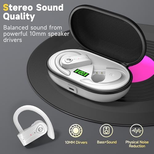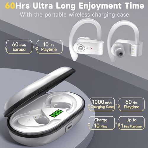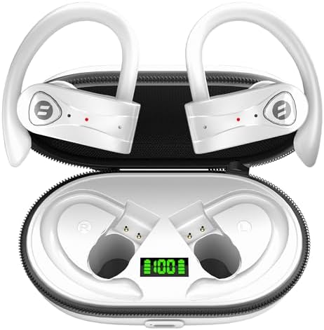 【LED Digital Display & Designed for Sports】The LED digital display on the charging case allows you to clearly and intuitively understand the power of the wireless earphones and the charging case, and whether they are fully-charged.This bluetooth headset with flexible and soft earhooks can fit different , they don’t fall off even during intense exercise and you won’t feel tired and sore from wearing it for long time. Suit for sports, running, hiking, jogging, etc.