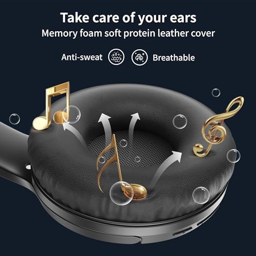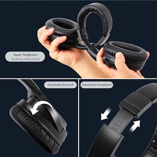 Foldable Lightweight Headphones: Showcase your style with our uniquely designed Bluetooth headphones wireless. These over ear headphones weigh only 0.36 pounds, making them incredibly lightweight. The headband and ear cushions are filled with soft memory foam, ensuring comfortable wear. The adjustable headphones cater to all age groups, from kids to individuals of all generations, and the foldable feature enhances portability.