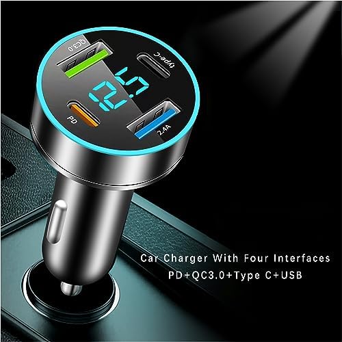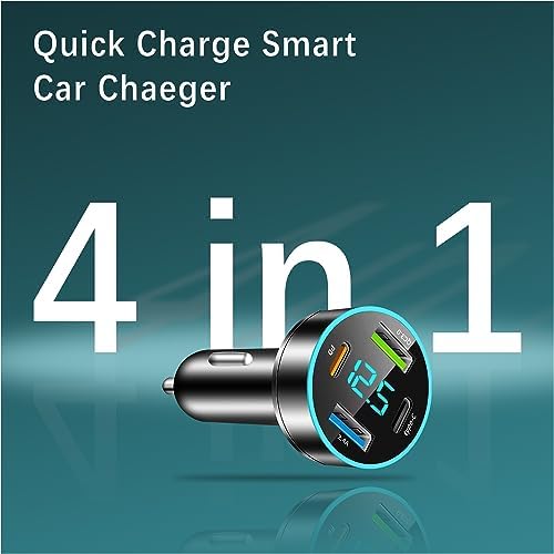 Car Charger Adapter – [Upgraded Version] Car Fast Charger with 4 Ports (PD+QC3.0+USB C) Atmosphere Light – 12-24V Car Truck SUV Universal USB Cigarette Lighter Adapter (QC3.0+Type-C+PD+2.4A)