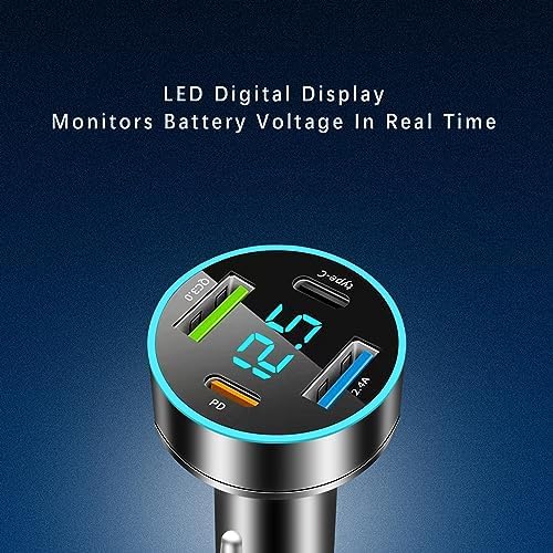 ⭐ Voltage Monitoring & Atmosphere Light:The biggest difference in the appearance of this car charger adapter lies in its voltage digital display meter and soft blue LED atmosphere light on the outer ring. It can constantly inform you of the voltage of the car and the charging status of the device, creating a safe environment. LED lights can also help you easily find the charging port at night.