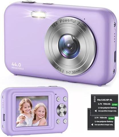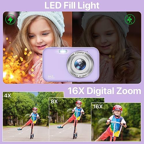 📸【48MP FHD 1080P Digital Camera】 The digital camera for photography equipped with 44 megapixel image resolution and 1080P high resolution video, boots up fast and support 16X digital zoom can help you get closer to your subject without sacrificing image quality. Press shutter easily capture beautiful and memorable moments.