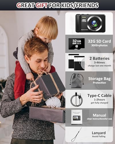 🎁【Easy to Operate & Perfect Gift】Designed for effortless use, this mini camera meets the daily photography needs of of all ages. Its intuitive buttons and simple menus ensure capturing every moment is as easy as pressing a button. It’s a thoughtful gift for teen boys, girls, parents, or anyone who loves photography, making a delightful surprise for birthdays, Christmas, or any special occasion.