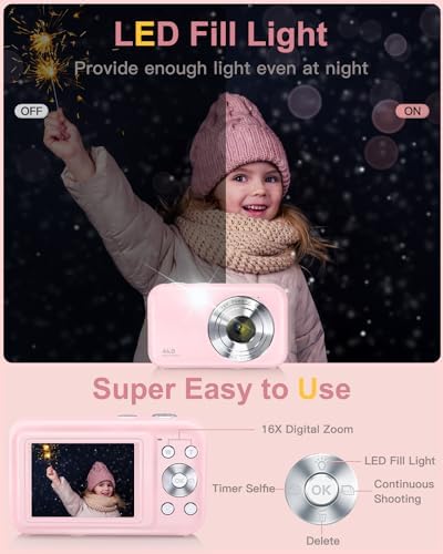 ๐Ÿ“ทใ€๐—™๐—›๐—— ๐Ÿญ๐Ÿฌ๐Ÿด๐Ÿฌ๐—ฃ ๐—ฉ๐—ถ๐—ฑ๐—ฒ๐—ผ๐˜€ & ๐Ÿฐ๐Ÿฐ๐— ๐—ฃ ๐—œ๐—บ๐—ฎ๐—ด๐—ฒ๐˜€ใ€‘Featuring an advanced CMOS Sensor and anti-shake function, this digital camera designed for teenager girls, boys, kids, children, and beginners is ideal for capturing high-quality 44.0-megapixel photos and shooting stable, smooth FHD 1080P resolution videos. Enjoy a lovely life and keep tracking impressive moments of your kids’ childhood! Capture those joyful moments and help your kids realize their dream of becoming photographers!