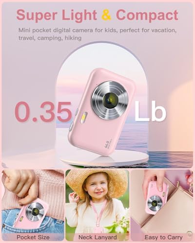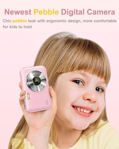 โญใ€๐—ก๐—ฒ๐˜„๐—ฒ๐˜€๐˜ ๐—ฃ๐—ฒ๐—ฏ๐—ฏ๐—น๐—ฒ ๐——๐—ถ๐—ด๐—ถ๐˜๐—ฎ๐—น ๐—–๐—ฎ๐—บ๐—ฒ๐—ฟ๐—ฎใ€‘This slim digital camera is perfect for kids to handle when capturing photos and recording videos. Its ergonomic design features a smooth, pebble-shaped surface that naturally fits in the palm of your hand, ensuring a comfortable and secure grip. Additionally, the kids camera comes with an adorable neck lanyard that makes it easy to carry, freeing up your hands for outdoor activities like travel, vacations, and camping.