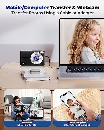 【Multifunctional and Webcam】This digital camera for kids not only has single shooting, continuous shooting, 2s/5s/10s timing functions, but also built-in microphone and anti-shake let it help you shoot clear and vivid vlogs. And the teen digital camera is equipped with a professional USB cable, which can be used as a webcam to connect to a computer for video calls or live broadcasts. The Pause feature allows you to pause while recording or playing a vlog, saving you time editing your video.