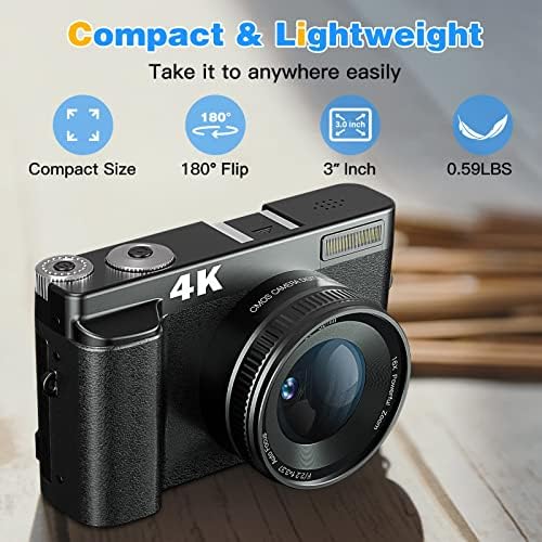 【Easy to use & Lightweight & Portable】 Cameras for photography and video support one button for switching back and forth between stills and video. The intuitive and easy navigation of digital cameras for photography menu system makes your shooting experience easy and enjoyable! With 0.59lbs weight, compact and lightweight enough to keep in your back pocket, which makes it a great cameras photography for beginners and amateurs for daily snapshots.
