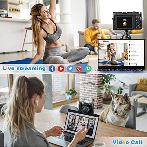 【Impressive 4K Video Capabilities】 Our digital camera delivers video shooting at up to a high bit rate of 4k 30 fps without missing any detail. And it also comes with a built-in 3.5mm mic input, so you can connect an external stereo microphone used as a webcam camera, allowing you to easily live stream or video call on YouTube, Facebook, Twitter, or other social media.