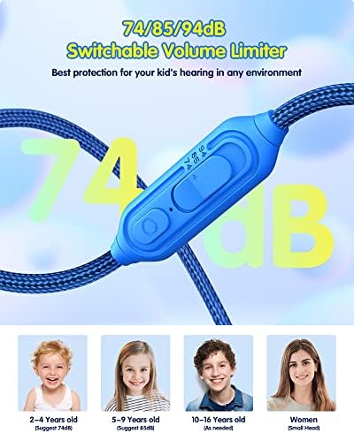 【Safe Volume Control, Hearing Protection】With 3-level volume control (74dB/85dB/94dB) specially designed for children, our Wired Headphones for kids are suitable for children of all ages. The Kids Headphones wired can be limited to a sound level of 85dB to protect your child’s hearing, and also allow to reach 94dB, which can be heard clearly in noisy environments without damaging the hearing.
