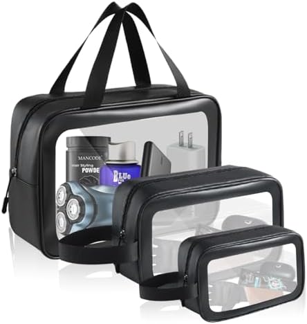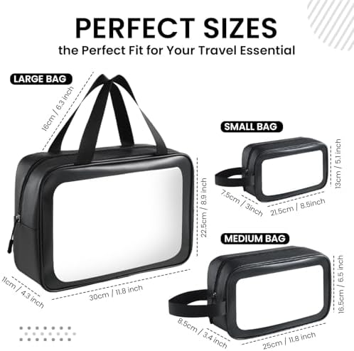 ❤【TSA-APPROVED TRAVEL SIZE TOILETRIES】 Included in this set are one spacious travel toiletry bag (11.8*4.3*8. 9 inches) , one medium-sized clear makeup bag (11.8×3.4×6.5 inches) , and a small cosmetic travel bag (8.5x3x5.1inches) . They serve as travel organizers for your travel and home needs, accommodating toiletries, cosmetics, everyday essentials, toys, medications, USB cables, earphones, or even a power bank.