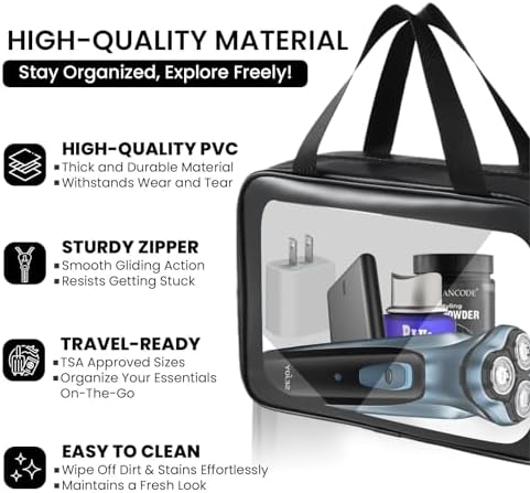 ❤【WATERPROOF MATERIAL】 Crafted from eco-friendly and waterproof PVC material, these clear toiletry bag are both durable and environmentally conscious. Featuring a translucent design and a wide-opening zipper, they facilitate easy visibility and efficient packing, saving you precious time in locating your essentials.