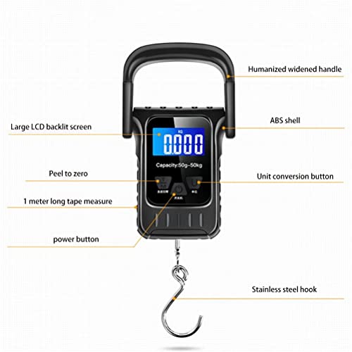GMOIUJ Digital Hanging Luggage Scale 110lb/50kg Outdoor Portable Handheld High Precision Electronic Scale with LCD Display Ruller Tape