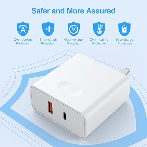 PD Wall Charger:[20W Fast Charging] The USB-C port of this wall charger supports PD fast charging technology and the USB-A port supports QC fast charging function. With a maximum power of 20W when charging through a single port. It provides you with an exceptional fast and efficient charging experience, allowing your device to instantly regain full power and vitality.