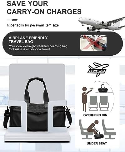 【Ideal Carry-On Size】The personal item bag for airlines are provided as approximately 18.11″”x9.84″”x9.84″”. These dimensions ensure that the bag meets typical carry-on size restrictions for airlines. The small duffle bag is suggested for use during overnight weekend trips.