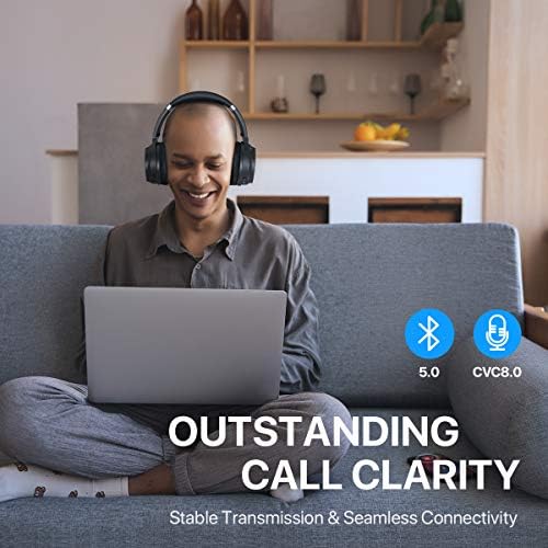 HROEENOI Active Noise Cancelling Headphones, JZ02 Bluetooth Headphones, Wireless Over Ear Headphones with CVC 8.0 Microphone Deep Bass Headset, 40 Hours Playtime for Travel Work TV Phone – Black