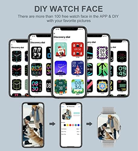 SAFE GUARD YOUR HEALTH: Smartwatch with advanced HR sensor for accurate and effective blood pressure, blood oxygen, and 24/7 heart rate monitoring, helping you better understand your health. Sleep tracker can monitor your sleep status automatically and provide a comprehensive sleep quality analysis (deep sleep, light sleep and awake) to help make a reasonable adjustment to your lifestyle. Female Physiological Cycle, Drink Reminder and Sedentary Reminder features to help become healthier.
