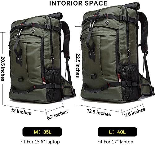 Large-capacity Backpack: The backpack Size – 20.5 X 12X 6.7 inches, Laptop Compartment Dimensions – 18 X 11 X 6 inches Capacity: 35L (Large size fits most 15.6″ Laptop.)weight:3.68 LBS