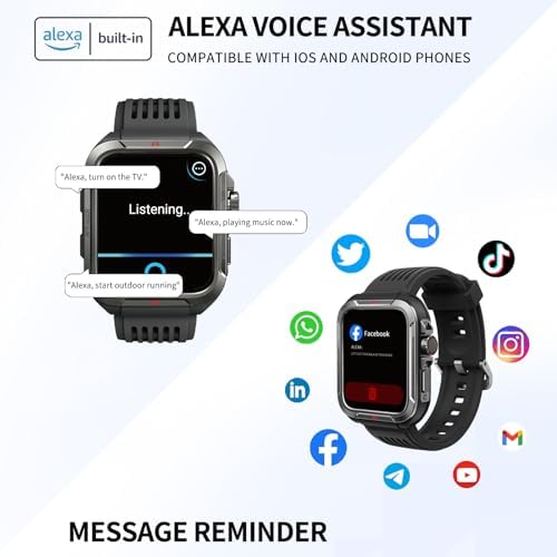 ⌚【ALEXA BUILT-IN MULTIFUNCTIONAL SMART WATCH】With this Alexa built-in multifunctional smart watch, you can answer/ make calls on it when it’s connected to your phone via Bluetooth. It has functions like call/message notification previews, period reminder, sedentary and drink water reminder, music control, set alarm, find phone, check the weather and so on. Bluetooth V5.3 supported. Download the “VeryFit” app from the App Store/Google play, connect to your watch via Bluetooth, and enjoy the convenience of Alexa on your smartwatch.