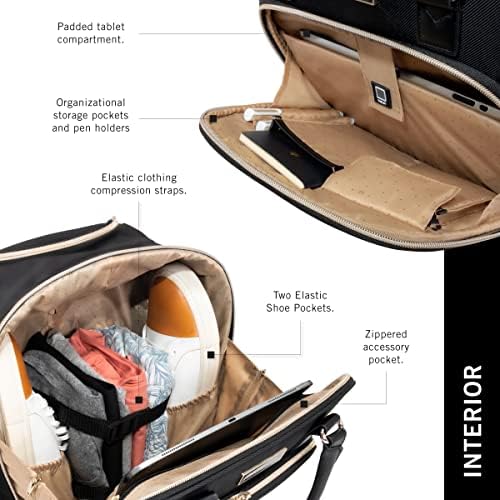Features tablet pocket and a spacious main compartment with shoe pockets and garment restraint straps.