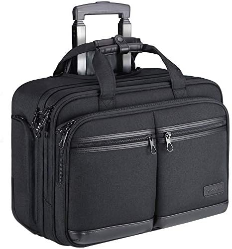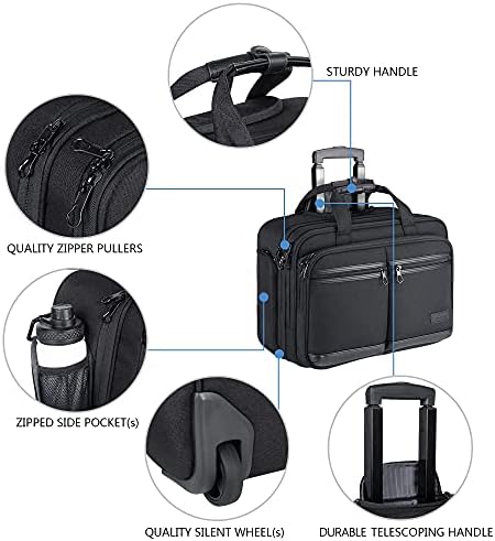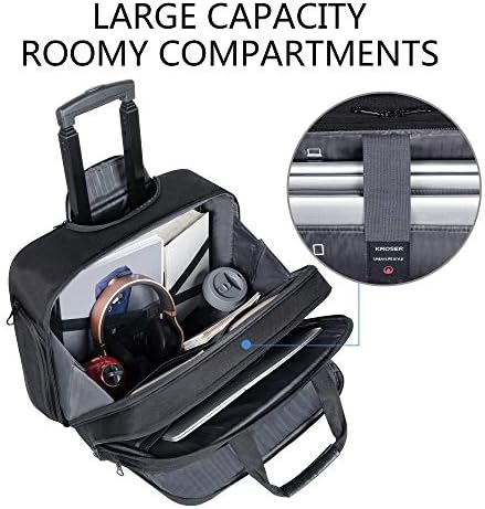 KROSER Rolling Laptop Bag Premium Rolling Briefcase Fits Up to 17.3 Inch Laptop Water-Repellent Overnight Rolling Computer Bag with RFID Pockets for Travel/Business/Men/Women-Black