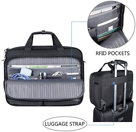 MULTIFUNCTIONAL COMPARTMENT: Roomy compartments provide separated space for your 17.3” computer, ipad, files, wallet, notebooks, clothes and all your items. Padded laptop compartment offers perfect protection for your laptop from accidental bumps and shocks. Zippered pockets at each side can hold your umbrella, water bottle, etc. RFID Pockets with Identity protection function protects date encoded on most IDs, credit cards and passports.