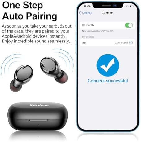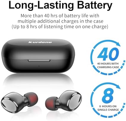 【Latest Bluetooth 5.2 & Effortless Pairing】Kurdene wireless earbuds with advanced bluetooth 5.2 technology owns fast and stable transmission without tangling, which makes the Bluetooth earbuds connect to electronic devices more consistently, providing you with an uninterrupted calling and music experience and Noise cancellation.These bluetooth earphones would instant paired once taken out from the charging case and auto connects with the last-paired device.