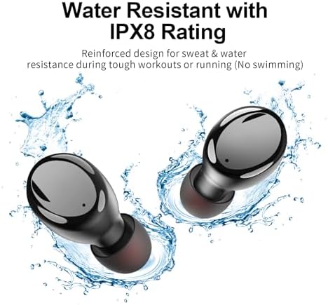 【IPX8 Waterproof & Sweatproof】With an IPX8 rating, this wireless earbuds are resistant to sweat, water and rain. S8 wireless earbuds can endure and work flawlessly under different weather conditions. There’s nothing holding you back from running through the storm or sweating out your new personal best in the gym.(Please note: The charging case is not waterproof)