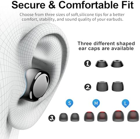【Customizable Fit for Comfortable Wearing】Every surface that touches your ear is made of liquid Silicone-not hard plastic(M size is installed, 6 pairs of different shapes of Ear Caps with size S/ M/ L for option for a customizable fit). The liquid silicone nozzle spreads pressure evenly across your ear for comfort, stability, and passive noise blocking. Giving you a fit for all-day comfort with less fatigue