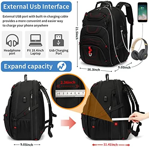 Exterior size:22*16.3*10 inch, Normal capacity is 55L, After Expanding:65L. This big College School Bookbag with expandable feature offers you more packing capacity than a standard laptop backpack.Fits most 19,18.4,18,17.3,17,15.6,15 inch laptops.Perfect for Large gaming laptop 18.4,19 inches, and up