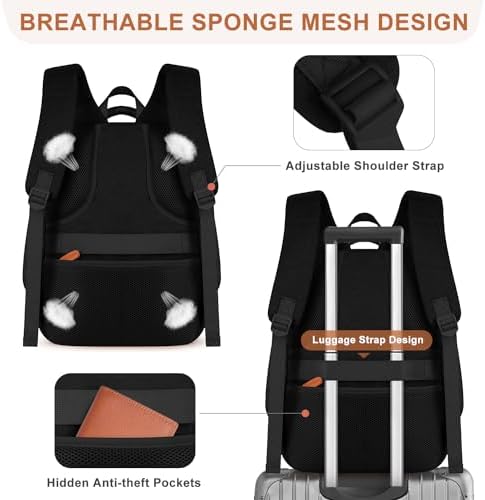 ✈【Comfortable Back Design】Enjoy enhanced comfort with thick, soft, breathable sponge mesh fabric on the back and shoulder straps,reducing pressure. Adjustable straps ensure a personalized fit. The luggage strap securely attaches the work backpack to your luggage, simplifying travel. Additionally, a hidden anti-theft pocket keeps your valuables secure.